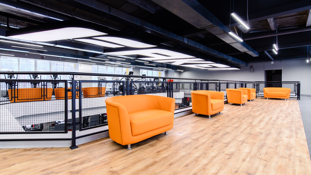Фитнес-центр с большой кардио-зоной, залами групповых программ, сауной, кафе, зоной релакса